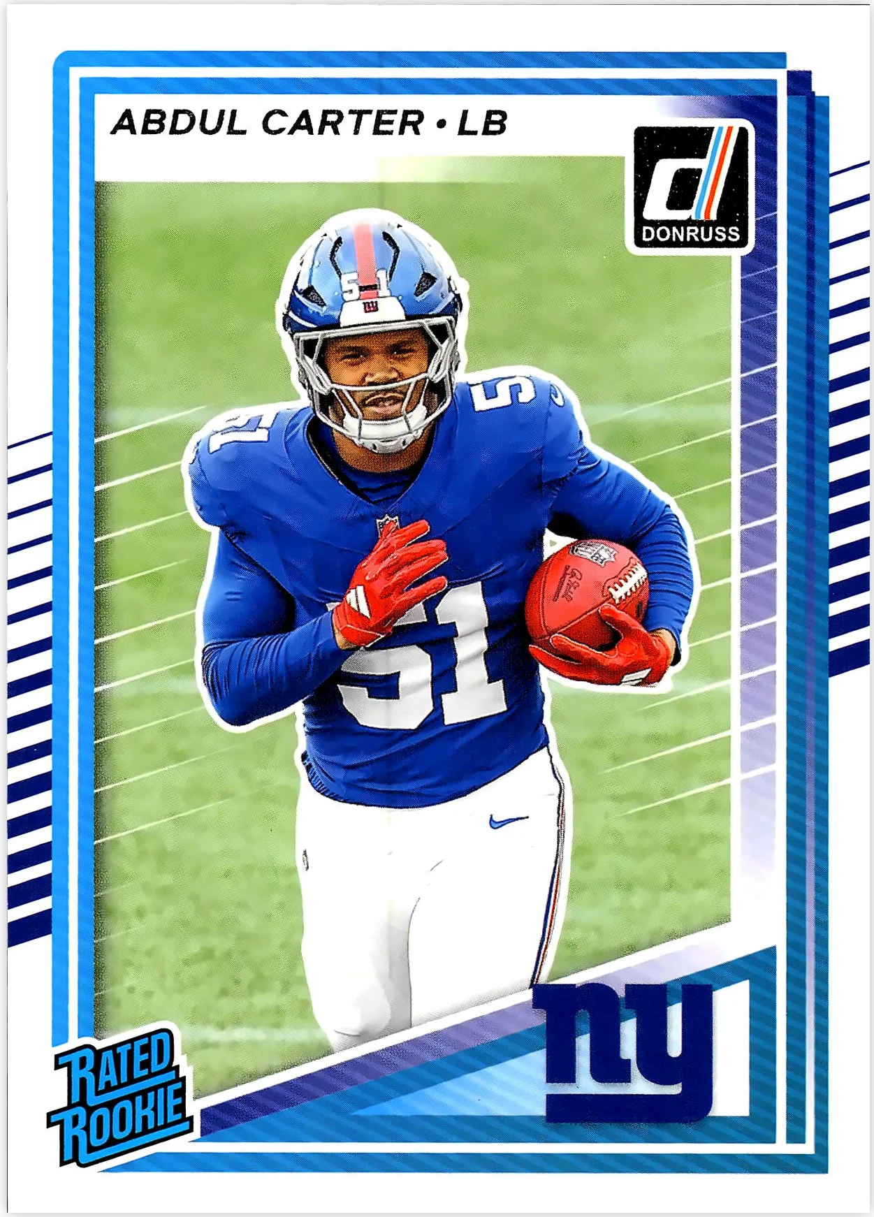 - Yes, the Abdul Carter Rookie Card 2025 Donruss #315 Press Proofs Purple is a rookie card featuring Abdul Carter of the New York Giants.