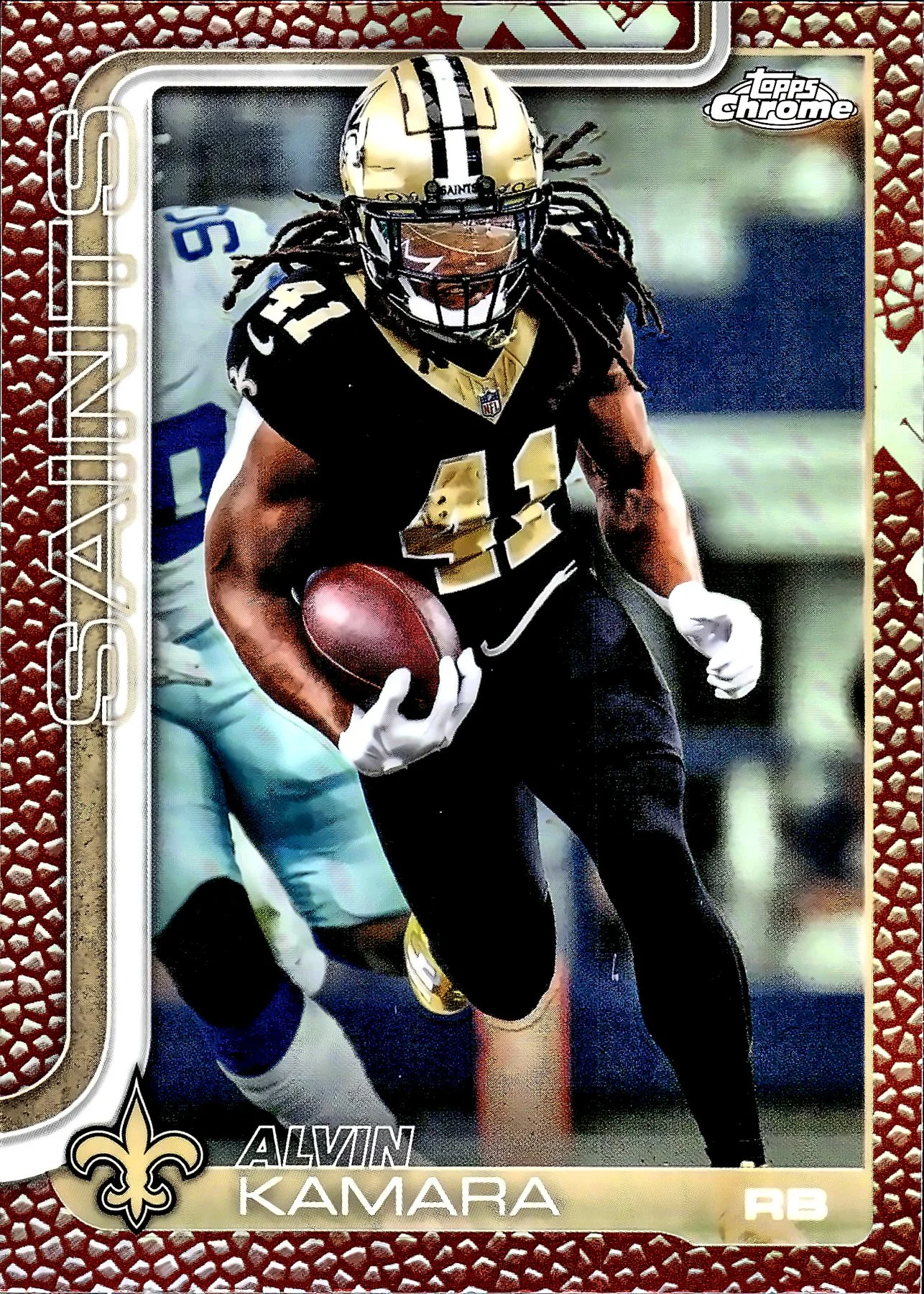 - The Alvin Kamara Football Leather Refractor 2025 Topps Chrome #215 sells for an average of $6.50, ranging from $4.99 to $34.99 based on 10 recent eBay sold listings.