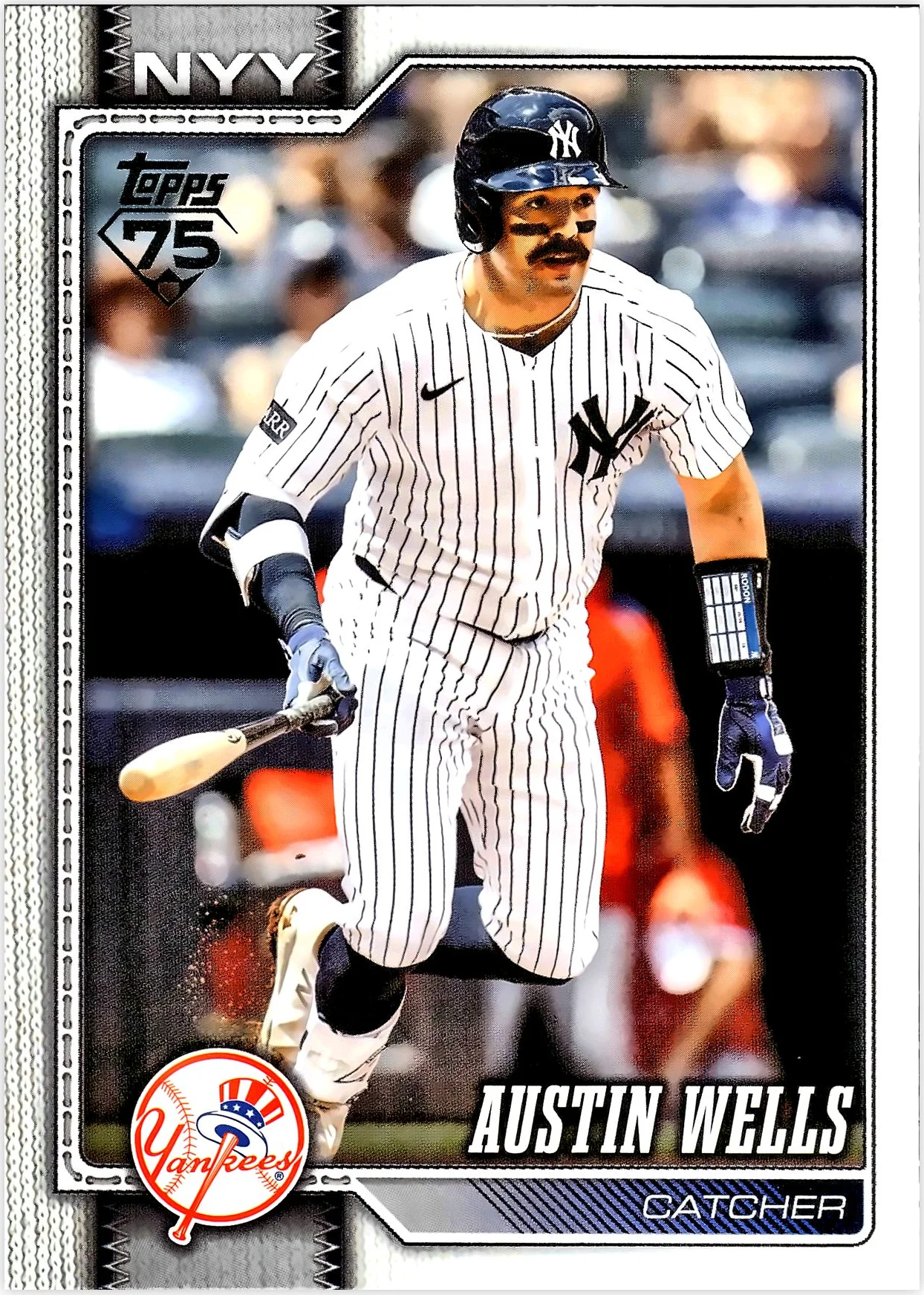 The 2026 Topps Austin Wells is a New York Yankees base card from the 2026 Topps #220 set. Austin Wells appears here as one of the recognizable names in the checklist, giving team and player collectors a straightforward option from the release. For buyers comparing copies, centering, corners, surface, and print quality are usually the biggest factors. This page shows recent eBay pricing along with related Austin Wells cards for collectors tracking the market.