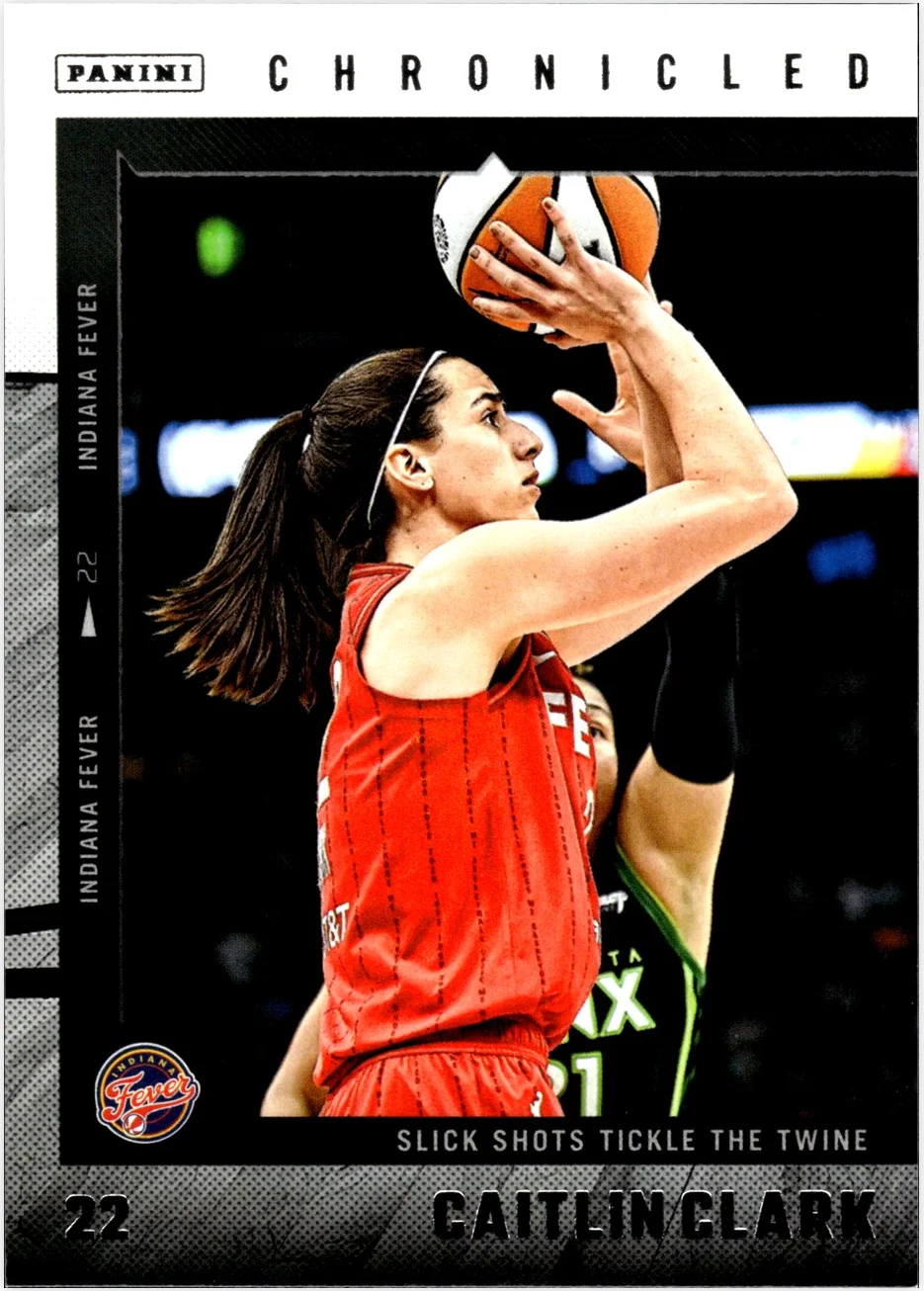 Card number 45 from the 2025 Panini Chronicled set features Caitlin Clark in an Indiana Fever uniform. As a base card from this release, it represents a standard option for both team and player collectors building their collections. When evaluating copies of this card, focus on centering, corner sharpness, surface condition, and overall print quality to find the best example for your needs. Market pricing and comparable Caitlin Clark cards are tracked here to help you monitor current values.