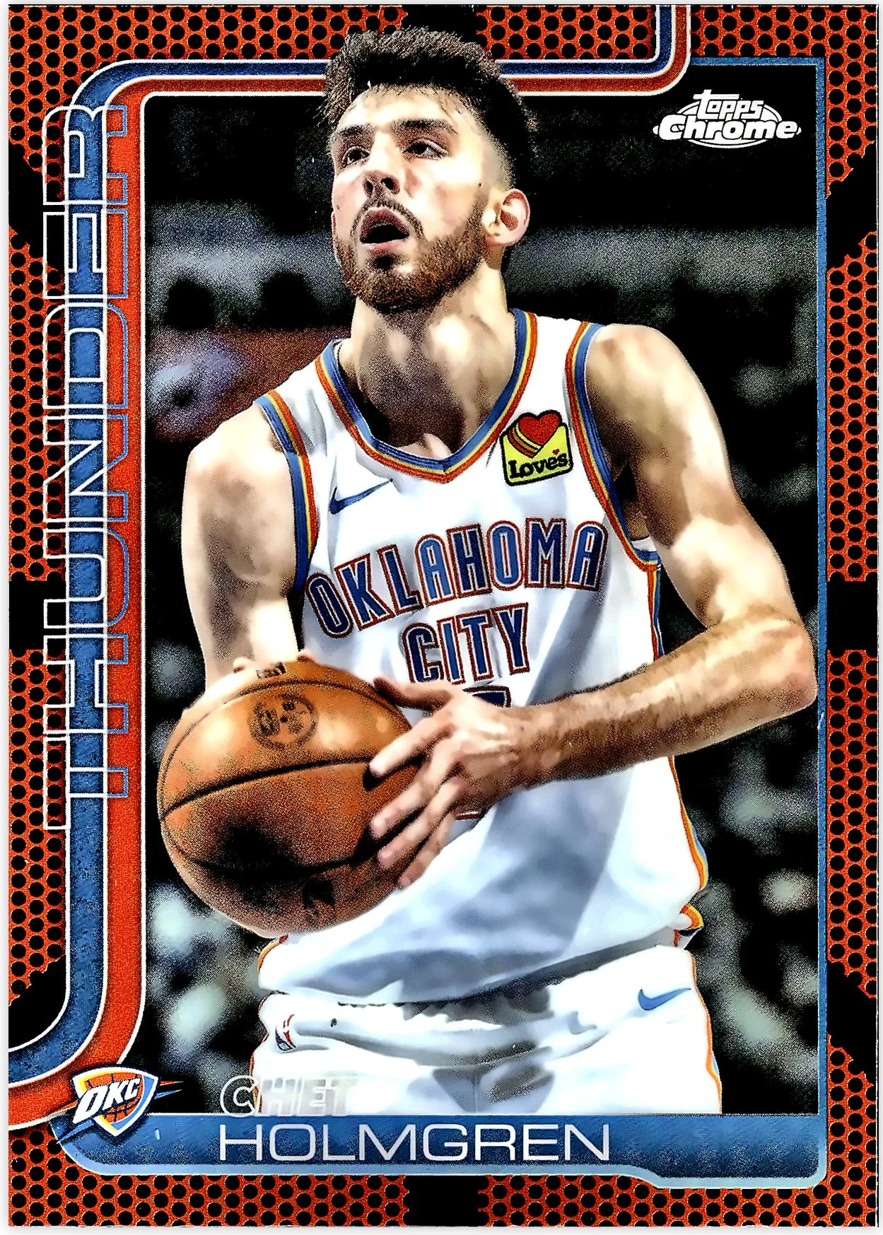 - The Chet Holmgren 2025-26 Topps Chrome #134 Basketball Refractor sells for an average of $1.57, ranging from $0.99 to $2.00 based on 25 recent eBay sold listings.