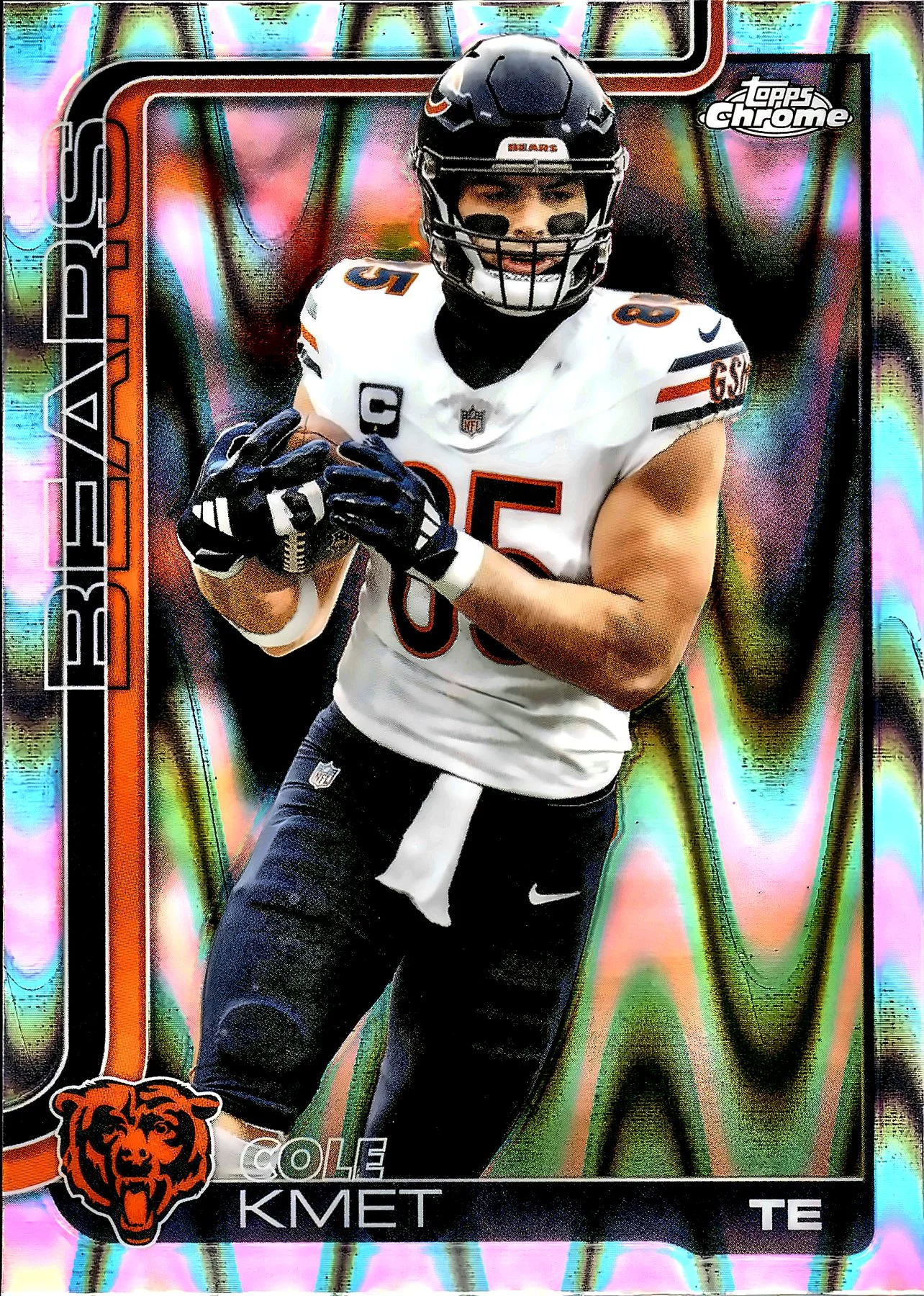 - The Cole Kmet RayWave Refractor 2025 Topps Chrome #51 sells for an average of $3.57, ranging from $1.99 to $5.00 based on 7 recent eBay sold listings.