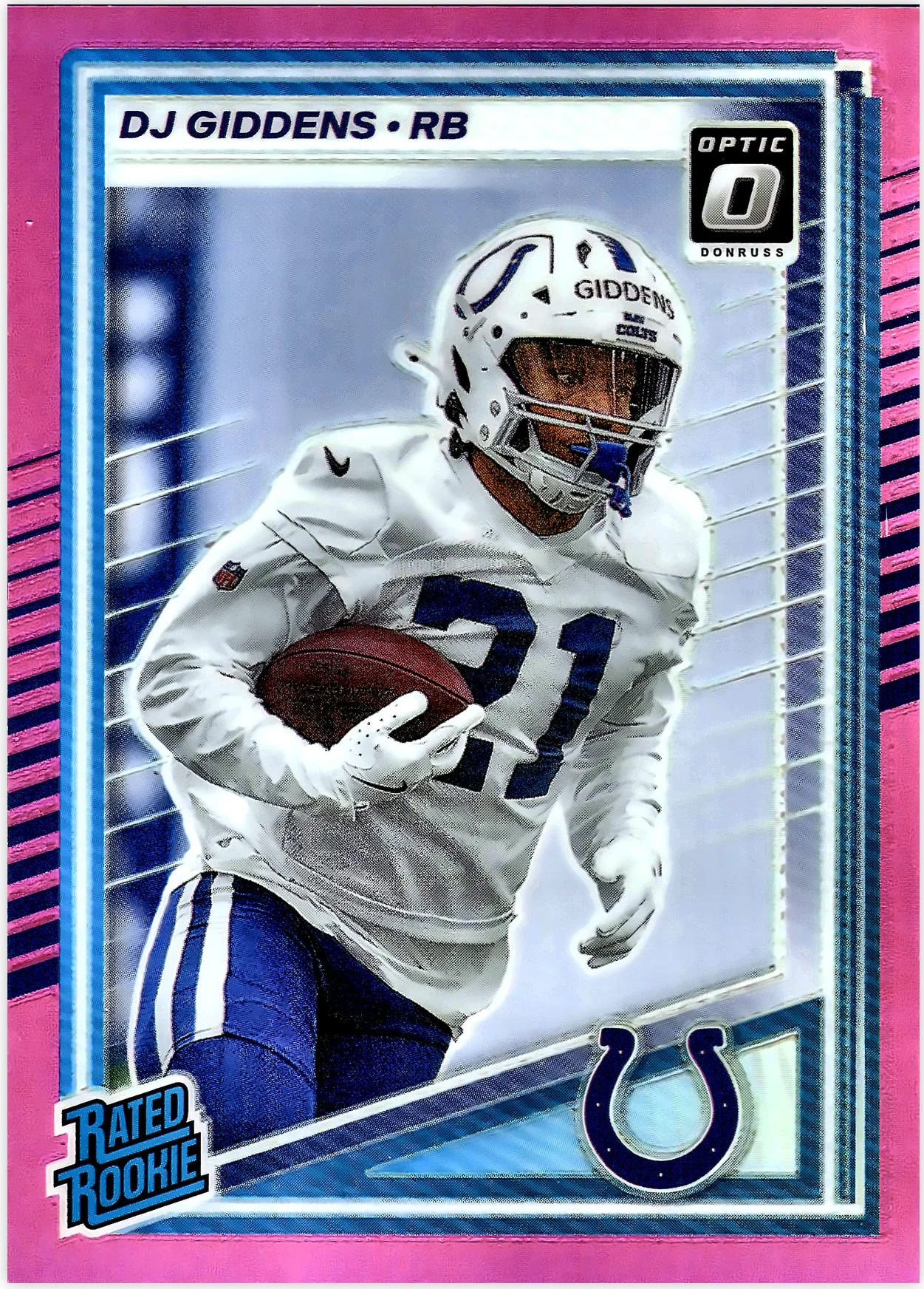 - Yes, the DJ Giddens Rookie Card 2025 Donruss #364 Optic Rated Rookies Preview Pink is a rookie card featuring DJ Giddens of the Indianapolis Colts.
