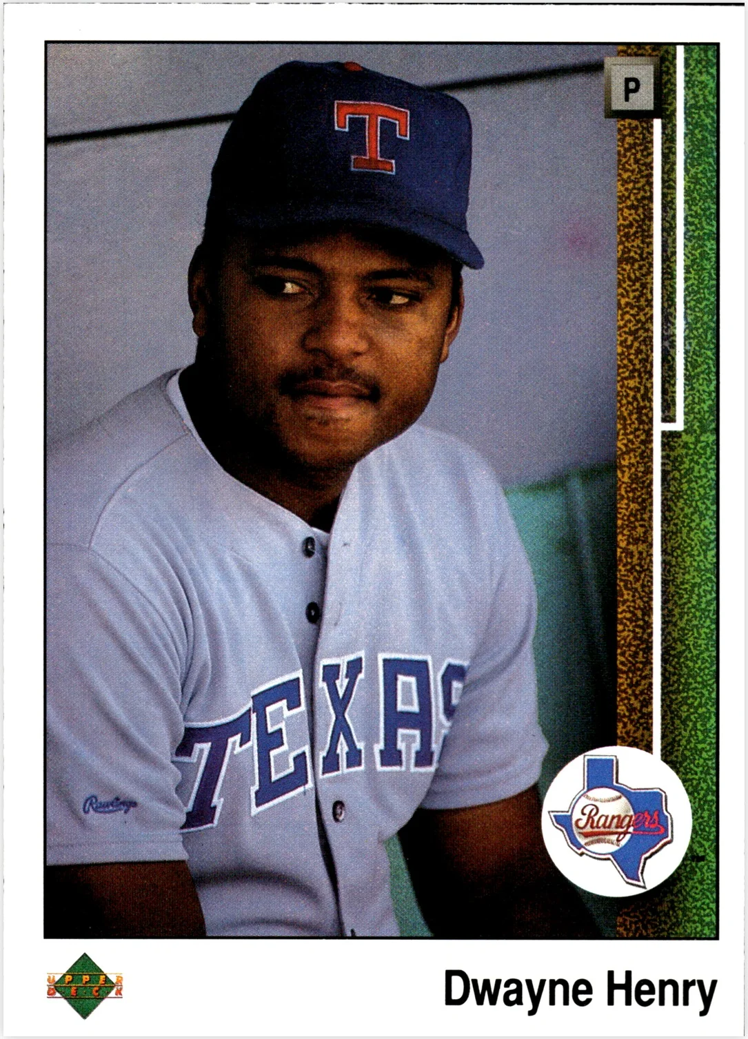 Card number 51 from the 1989 Upper Deck set features Dwayne Henry of the Texas Rangers. As a standard base card from this foundational Upper Deck release, it remains a recognizable addition to both team and player collections. Like most cards from this era, condition plays a key role in determining value, with centering, corner wear, surface quality, and print consistency being the primary considerations for collectors evaluating individual copies. The 1989 Upper Deck set marked an important milestone in modern card production, and base cards like this one continue to appeal to those building vintage Rangers lineups or completing the full checklist.