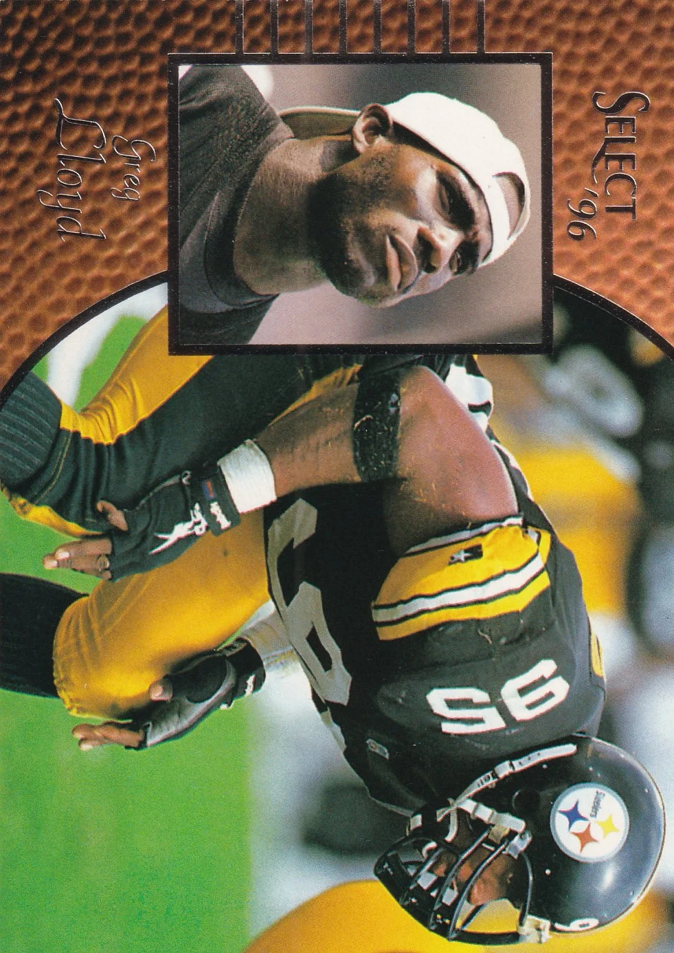 Greg Lloyd graces card #48 in the 1996 Select release, representing the Pittsburgh Steelers on this base card option. Lloyd's presence in the checklist appeals to both team collectors and those building player collections from this vintage set. When evaluating different copies, focus on centering, corner condition, surface wear, and print quality to find the best example for your collection. Market pricing for this card tracks regularly across collector platforms, with comparable Greg Lloyd cards available for those seeking alternatives from the same era.