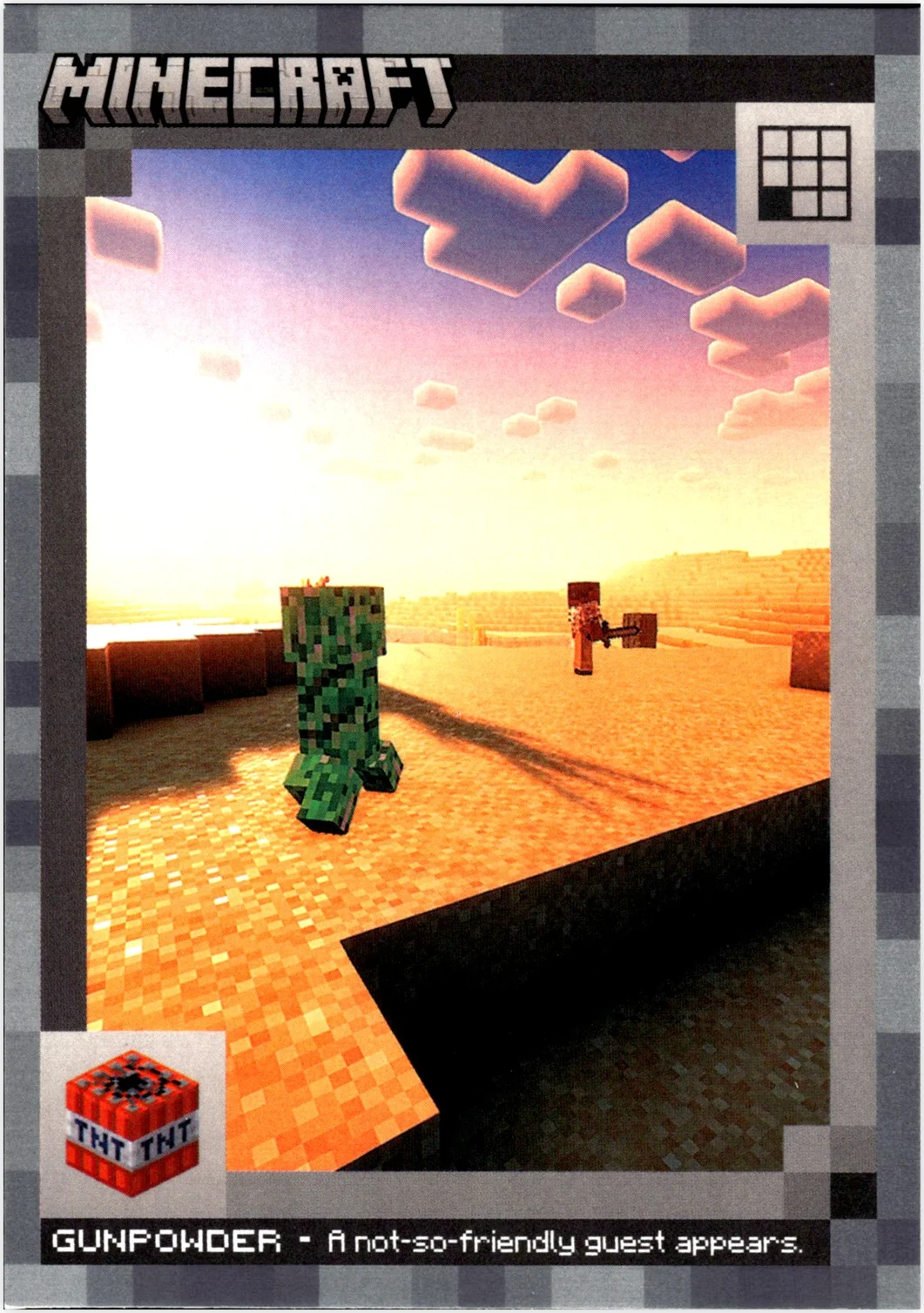 Gunpowder appears as card #88 in the 2024 Panini Minecraft set, representing part of the Stone subset within this gaming and trading card crossover. The set appeals to collectors of all experience levels, from younger enthusiasts discovering Minecraft cards to dedicated set builders seeking the game's iconic mobs, items, and characters. As a Stone subset card, it distinguishes itself from the standard base checklist offerings. When evaluating copies, standard grading factors apply - centering, corner condition, and surface quality all influence a card's overall appearance. Collectors building the 2024 Panini Minecraft set will find this card an essential addition to their Stone subset holdings alongside related releases from the same product.
