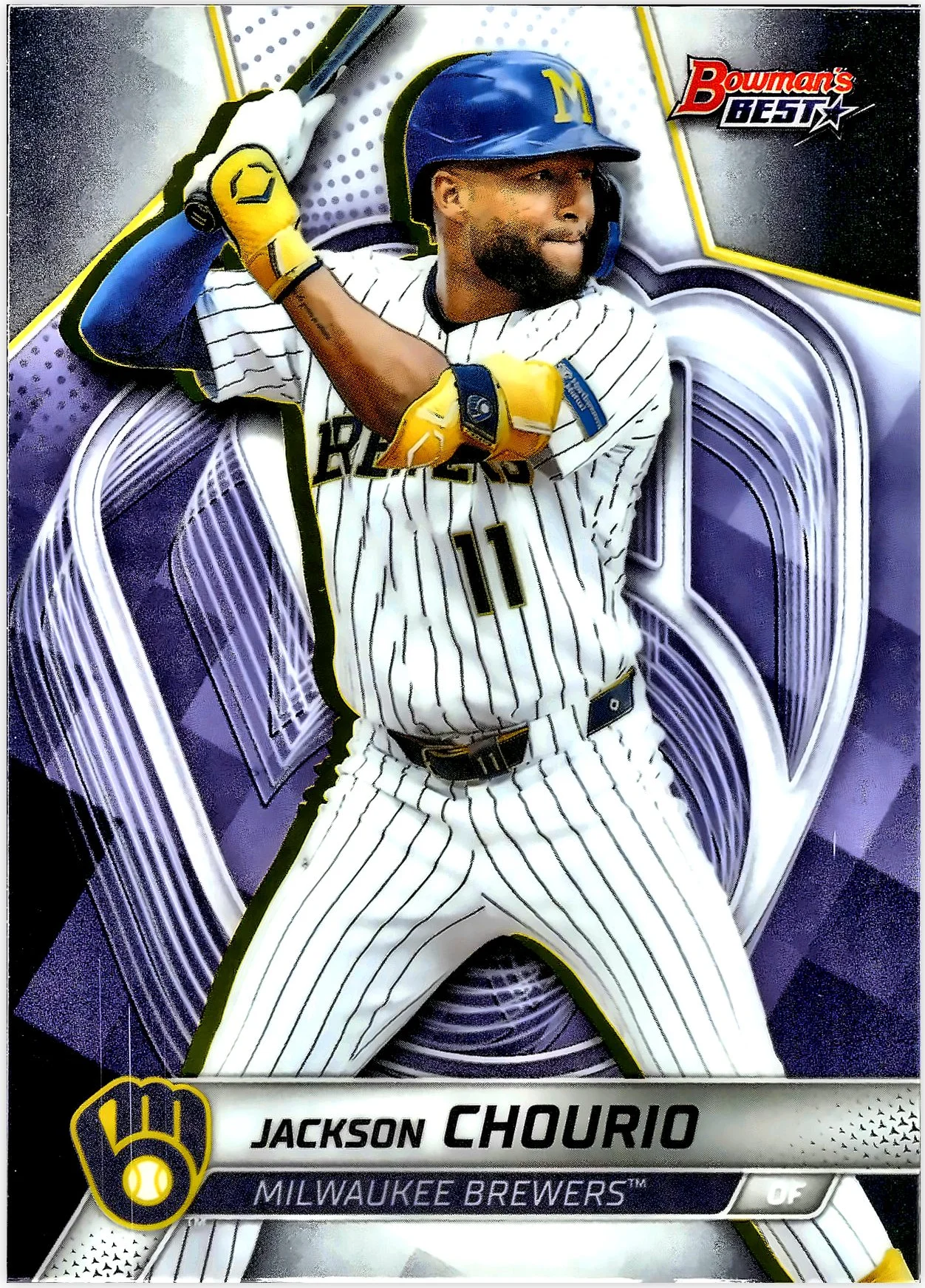 The 2025 Bowman Jackson Chourio is a Milwaukee Brewers prospect card that may appeal to collectors following the player before a full major league breakout. Prospect cards often see interest rise and fall with performance, rankings, and call-up expectations, which can make market movement more active than on established veterans. Buyers comparing listings should look closely at centering, corners, surface, and whether the card is sold raw or graded. This page includes recent eBay pricing and links to other Jackson Chourio cards.