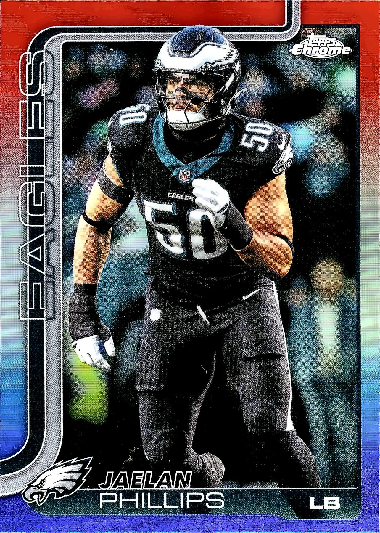 - The Jaelan Phillips Red White Blue Refractor 2025 Topps Chrome #192 sells for an average of $5.39, ranging from $3.00 to $12.99 based on 7 recent eBay sold listings.