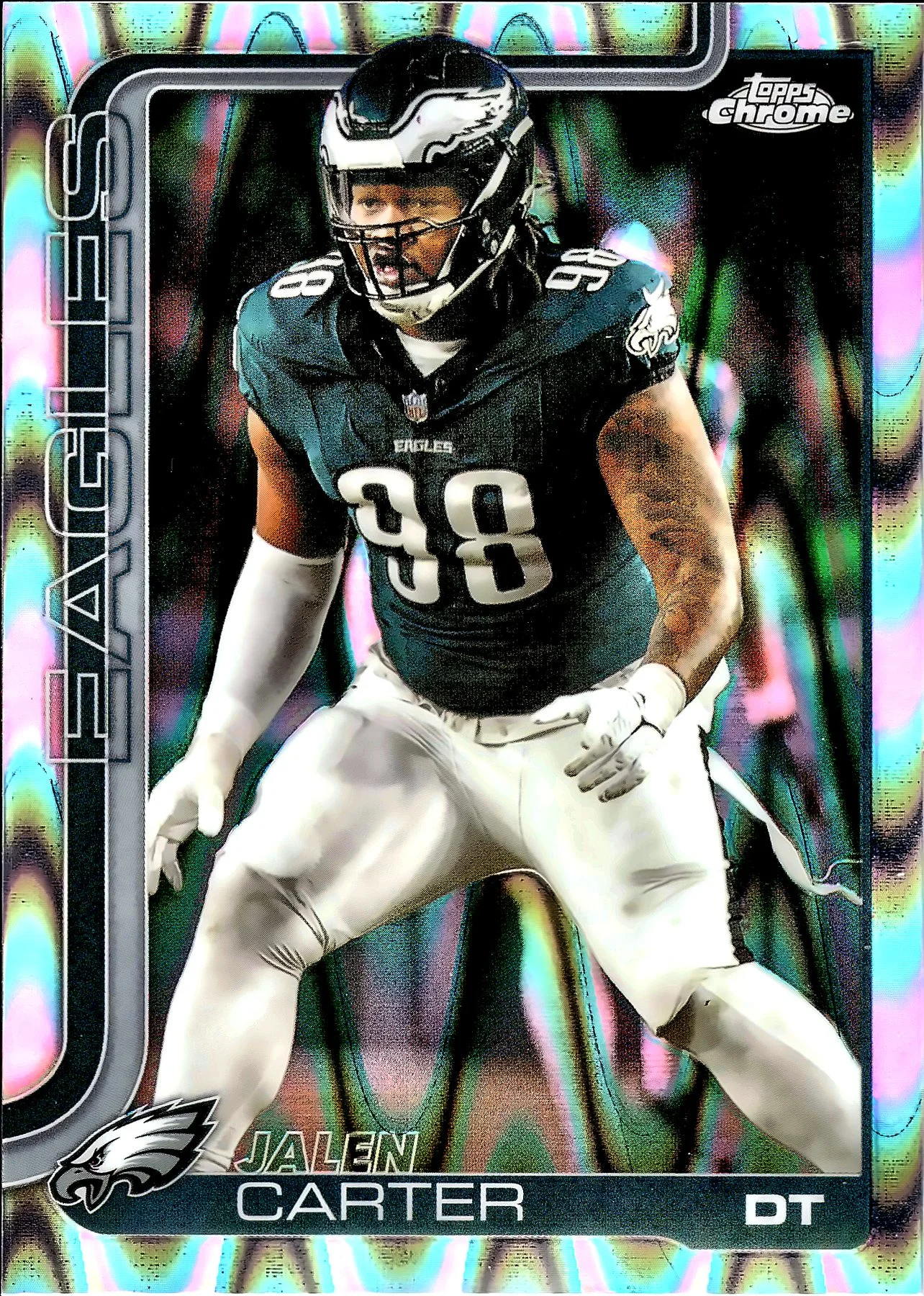 - The Jalen Carter RayWave Refractor 2025 Topps Chrome #250 sells for an average of $3.17, ranging from $1.65 to $4.99 based on 8 recent eBay sold listings.