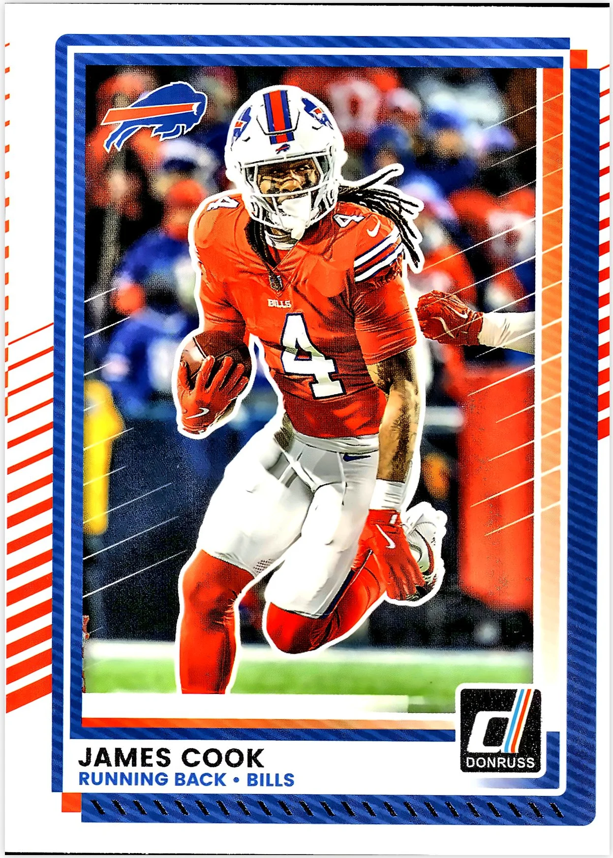 The 2025 Donruss James Cook is a Buffalo Bills base card from the 2025 Donruss #194 set. James Cook appears here as one of the recognizable names in the checklist, giving team and player collectors a straightforward option from the release. For buyers comparing copies, centering, corners, surface, and print quality are usually the biggest factors. This page shows recent eBay pricing along with related James Cook cards for collectors tracking the market.