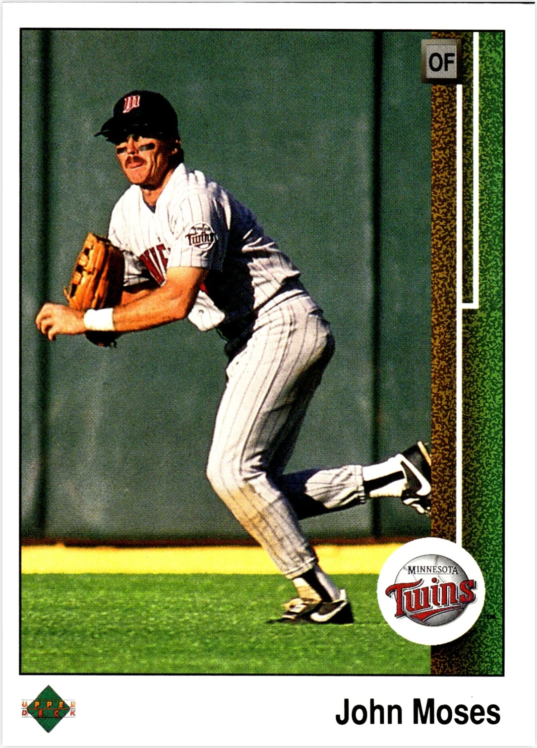 John Moses, a Minnesota Twins outfielder, is featured on this 1989 Upper Deck base card numbered 242. Upper Deck's inaugural baseball release in 1989 included Moses among its lineup of players, making this a standard option for both team and player collectors building sets from that year. When evaluating different copies, focus on centering, corner sharpness, surface condition, and overall print quality to determine individual card quality. Recent sales data and comparable John Moses cards from the era can help you gauge current market values for this release.
