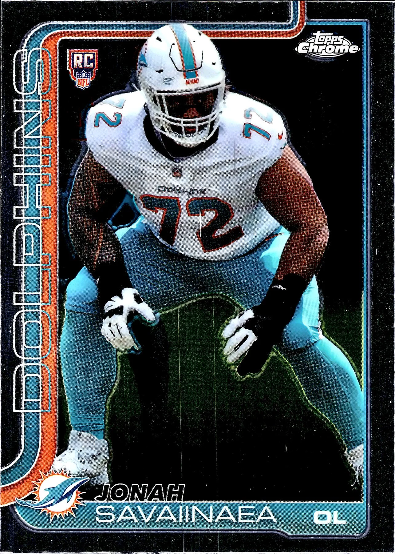 - Yes, the Jonah Savaiinaea #380 Rookie Card 2025 Topps Chrome is a rookie card featuring Jonah Savaiinaea of the Miami Dolphins.
