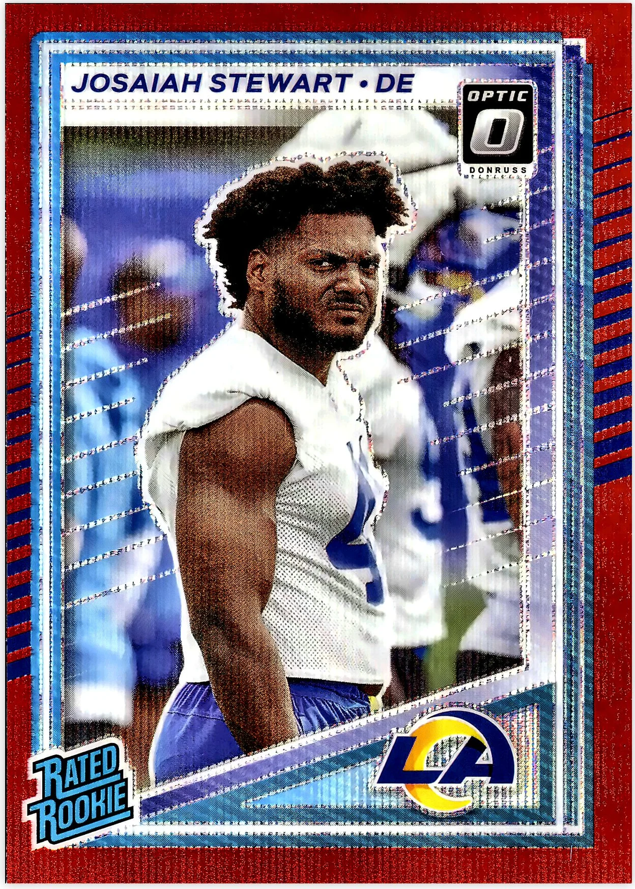 - Yes, the Josaiah Stewart Rookie Card 2025 Donruss #376 Optic Rated Rookies Preview Red Wave is a rookie card featuring Josaiah Stewart of the Los Angeles Rams.