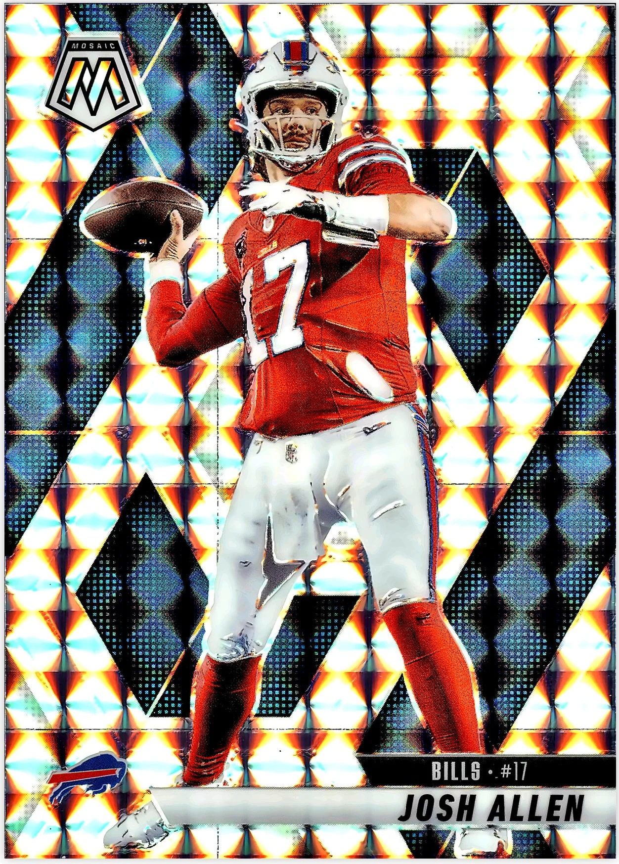 - The Josh Allen 2025 Panini Mosaic #150 Mosaic No Huddle Silver sells for an average of $1.34, ranging from $0.99 to $1.75 based on 25 recent eBay sold listings.