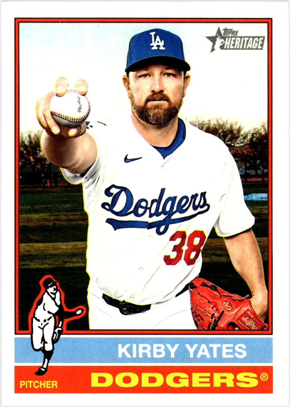 Kirby Yates appears on card #649 of the 2025 Topps Heritage set as a Los Angeles Dodgers base card. The card offers team and player collectors a standard option from the release. When evaluating copies of this card, focus on centering, corners, surface condition, and print quality as the primary assessment points. Recent eBay sales data and comparable Kirby Yates cards are available on this page for collectors monitoring current market values.