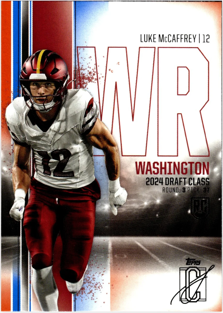Luke McCaffrey's 2024 Topps Signature Class rookie card captures the Washington Commanders quarterback in his first year of release. Card 197 from the Orange subset represents an early entry point for collectors building McCaffrey runs or pursuing his rookie-year issues. Evaluating condition remains key when comparing copies, with centering, corner sharpness, edge quality, and surface wear all playing roles in overall appeal. Finding comparable sales helps establish fair market value for this release, and exploring other McCaffrey rookies from 2024 rounds out a complete rookie collection.