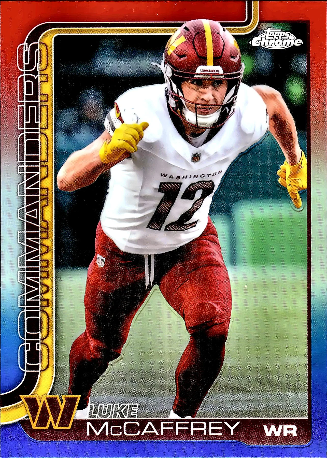 - Yes, the Luke McCaffrey Red White Blue Refractor Rookie Card 2025 Topps Chrome #298 is a rookie card featuring Luke McCaffrey of the Washington Commanders.