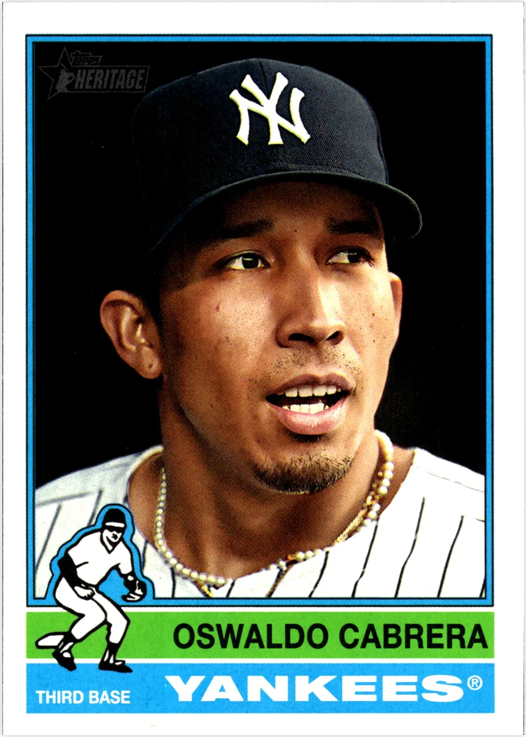 Oswaldo Cabrera appears on card #534 from the 2025 Topps Heritage High Number set as a New York Yankees base card. The release includes Cabrera among its roster of established names, offering team collectors and player enthusiasts a standard option from the high number series. Condition assessment remains important when evaluating copies, with centering, corners, surface quality, and print consistency serving as primary considerations for collectors. Check current eBay listings and comparable Oswaldo Cabrera cards to monitor pricing trends in the secondary market.