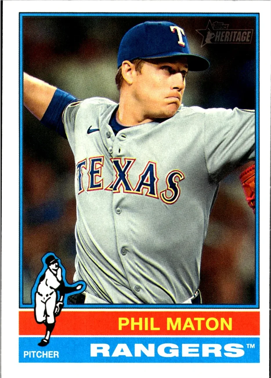 Phil Maton's 2025 Topps Heritage base card captures the Texas Rangers reliever as card number 567 in the set. Collectors building Rangers lineups or pursuing complete Heritage checklists will find this a standard inclusion from the release. When evaluating copies, focus on the typical condition markers: centering, corner wear, surface quality, and print consistency. Recent market activity and comparable Phil Maton cards are tracked here to help collectors monitor current pricing and availability for this straightforward base card option.