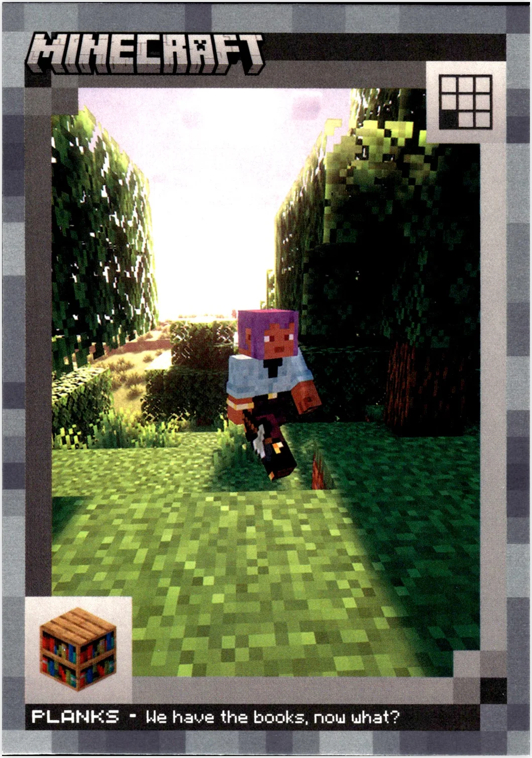 Planks appears as card #106 in the 2024 Panini Minecraft set, bringing the popular game into the trading card hobby. The character is featured as part of the Stone subset, which provides visual distinction from the standard base checklist. Minecraft cards attract younger collectors, set builders, and enthusiasts seeking their favorite game elements in card form. Like all cards, condition plays an important role when evaluating different copies, with centering, corner sharpness, and surface quality serving as key considerations. This card represents one of many options from the 2024 Panini Minecraft release for collectors building their collections.