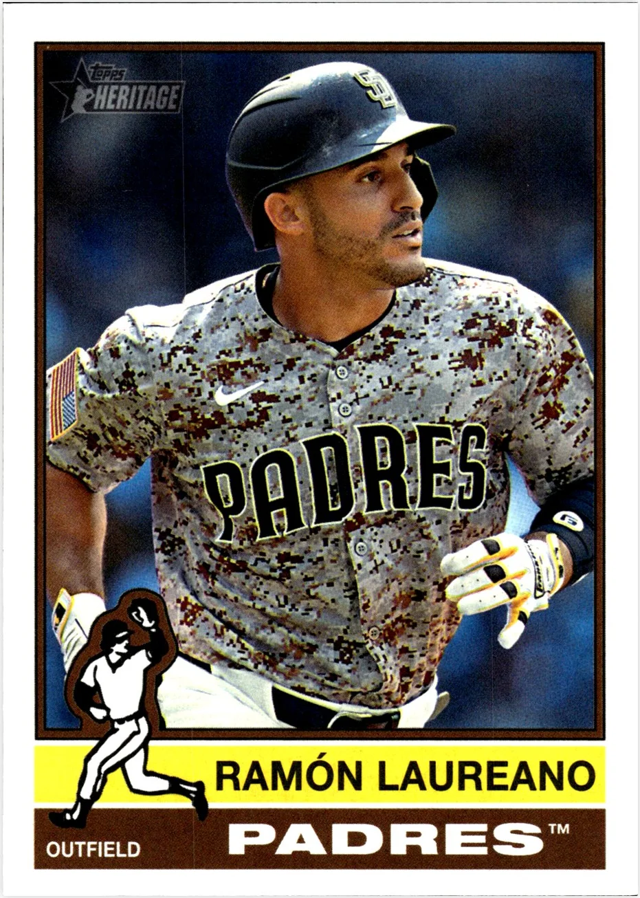 Ramón Laureano's 2025 Topps Heritage card (#515) features the San Diego Padres outfielder in this base release from the set. As a standard issue from the checklist, it appeals to both Padres fans and those building player collections. Like most Heritage base cards, condition assessment focuses on centering, corner sharpness, surface quality, and print consistency. Collectors evaluating copies should examine these standard grading factors when comparing available versions. The card represents a straightforward addition to the 2025 Heritage set, with pricing and comparable sales tracked regularly for reference by the collecting community.