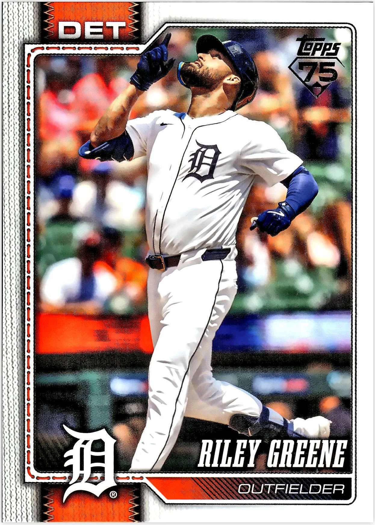 The 2026 Topps Riley Greene parallel is a parallel version that stands apart from the standard release. Cards like this often appeal to collectors looking for scarcer versions of a player's main card, especially when the print run is lower than the base checklist copy. Buyers typically compare serial numbering, surface quality, centering, and overall eye appeal when deciding between listings. This page highlights recent eBay pricing and other Riley Greene parallels and related cards.