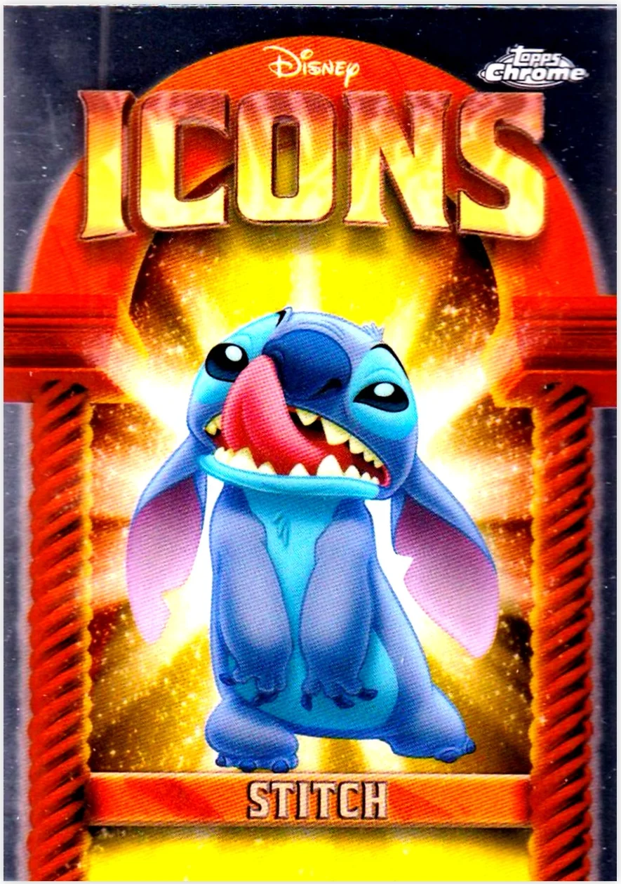 Card number DI-18 features Stitch in the 2025 Topps Chrome Disney set, landing in the Disney Icons subset. As Disney character cards continue to gain traction among collectors, this chrome-finished release presents an appealing alternative to standard base offerings. The reflective nature of chrome cards makes condition particularly relevant when evaluating copies, with centering, surface quality, and edge sharpness all contributing to overall appeal. Whether you're building a complete Disney set or focusing specifically on the Icons subset, this Stitch card delivers the distinctive visual style the Chrome line is known for.