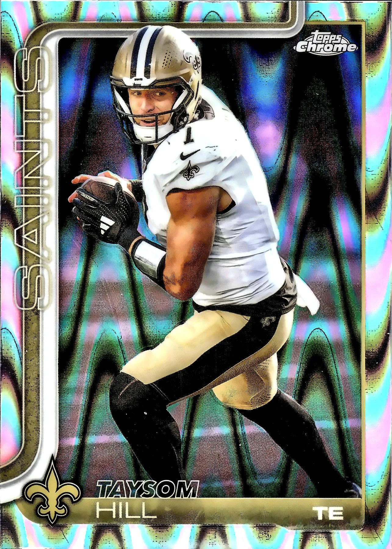- The Taysom Hill RayWave Refractor 2025 Topps Chrome #222 sells for an average of $4.52, ranging from $1.79 to $10.00 based on 13 recent eBay sold listings.
