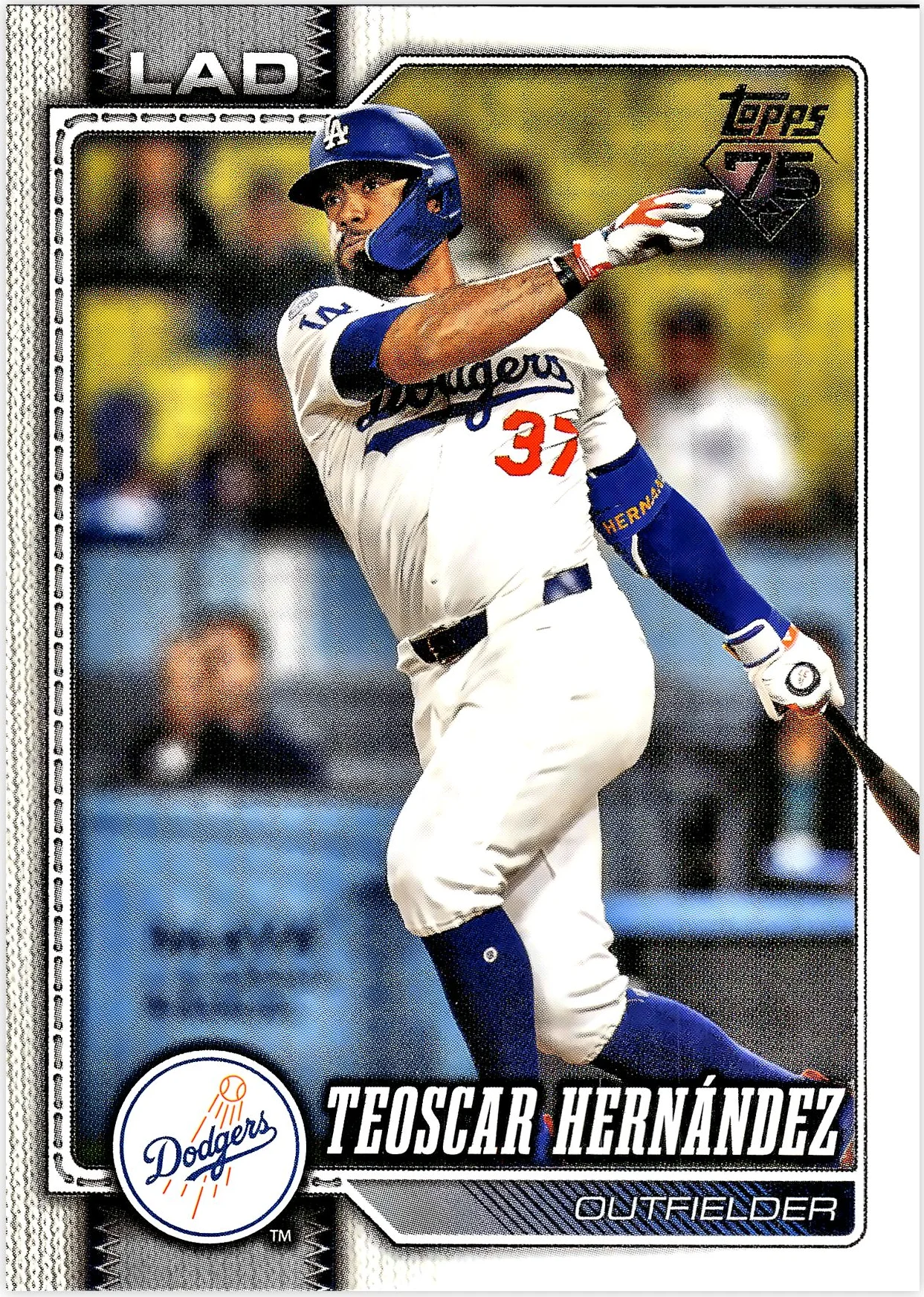 The 2026 Topps Teoscar Hernández is a Los Angeles Dodgers base card from the 2026 Topps #251 set. Teoscar Hernández appears here as one of the recognizable names in the checklist, giving team and player collectors a straightforward option from the release. For buyers comparing copies, centering, corners, surface, and print quality are usually the biggest factors. This page shows recent eBay pricing along with related Teoscar Hernández cards for collectors tracking the market.