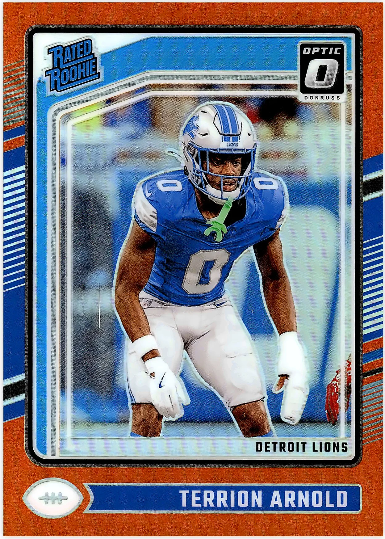 - Yes, the Terrion Arnold Rookie Card 2024 Donruss Optic #290 Orange is a rookie card featuring Terrion Arnold of the Detroit Lions.