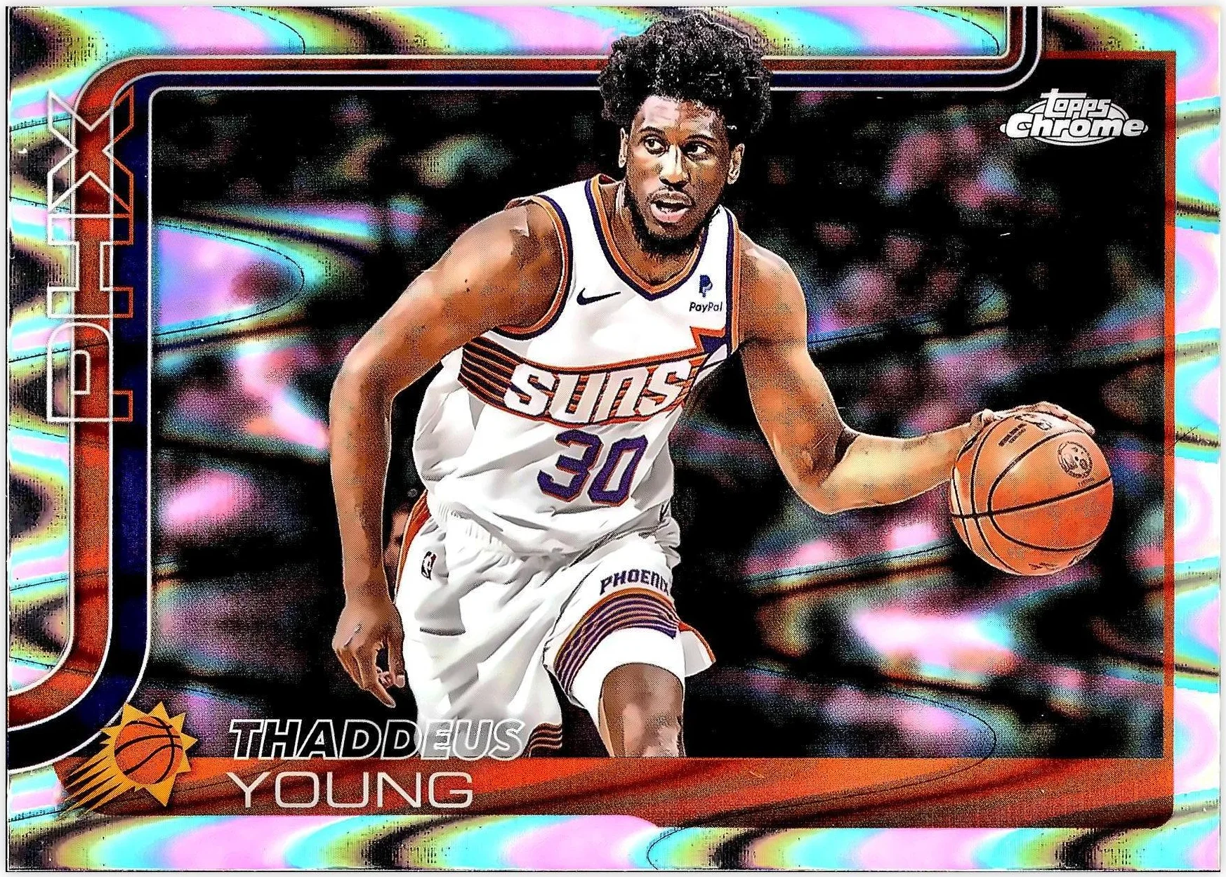 - The Thaddeus Young 2025-26 Topps Chrome #135 RayWave Refractor sells for an average of $1.86, ranging from $0.99 to $3.99 based on 25 recent eBay sold listings.