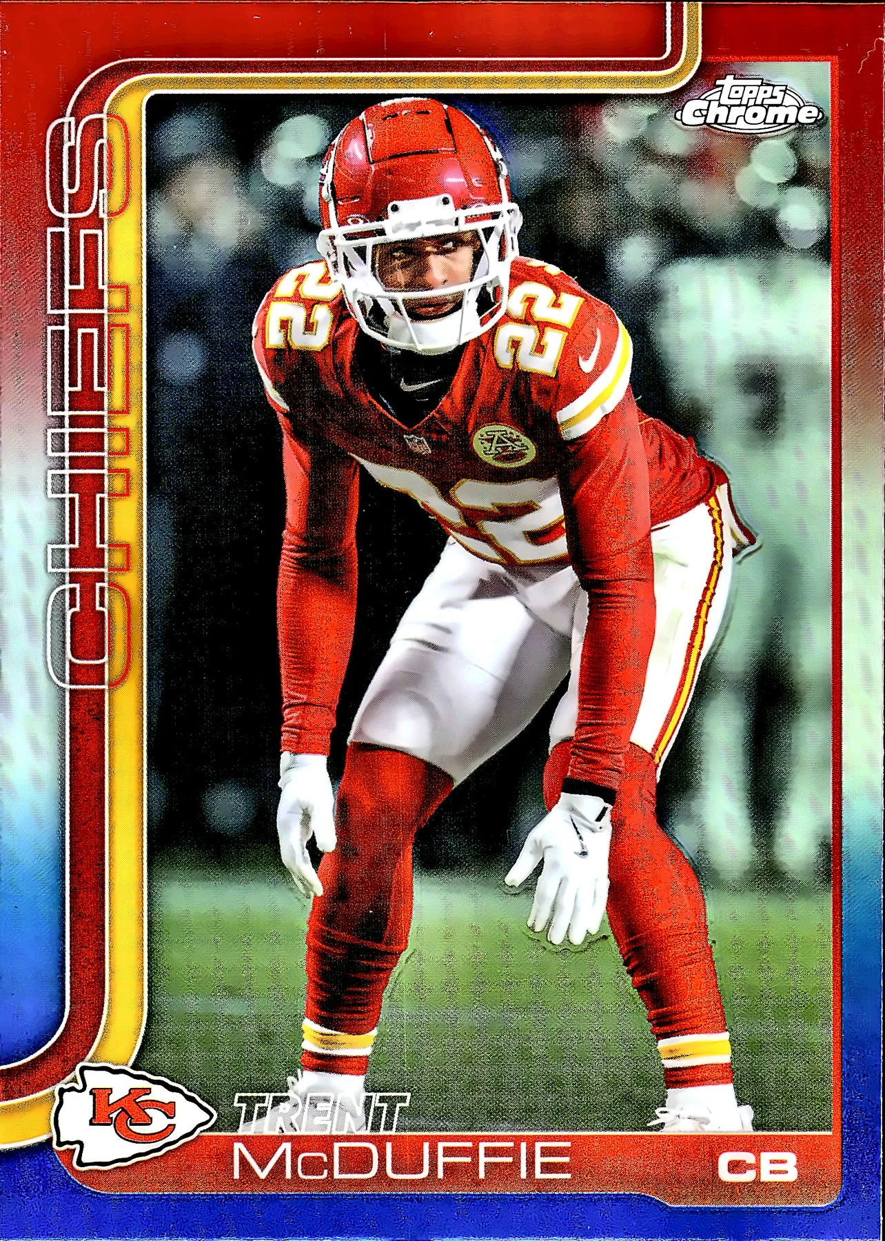 - The Trent McDuffie Red White Blue Refractor 2025 Topps Chrome #154 sells for an average of $3.91, ranging from $1.99 to $4.99 based on 6 recent eBay sold listings.
