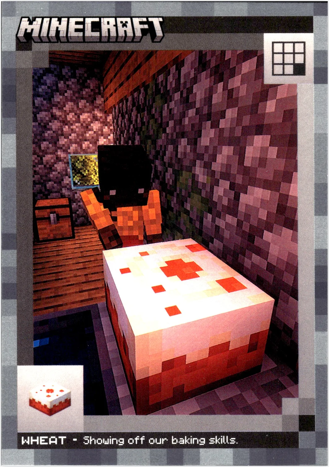 Wheat appears on card #117 from the 2024 Panini Minecraft set, bridging the popular game with the trading card hobby. The character belongs to the Stone subset, which differentiates it from the standard base checklist. Collectors pursuing Minecraft cards, whether building complete sets or seeking specific game elements, find these releases appealing. As with any trading card, condition plays an important role when evaluating individual copies. Centering, corner sharpness, and surface quality all factor into how collectors assess this card's state. Related cards from the 2024 Panini Minecraft release offer additional collecting options for fans of the crossover.