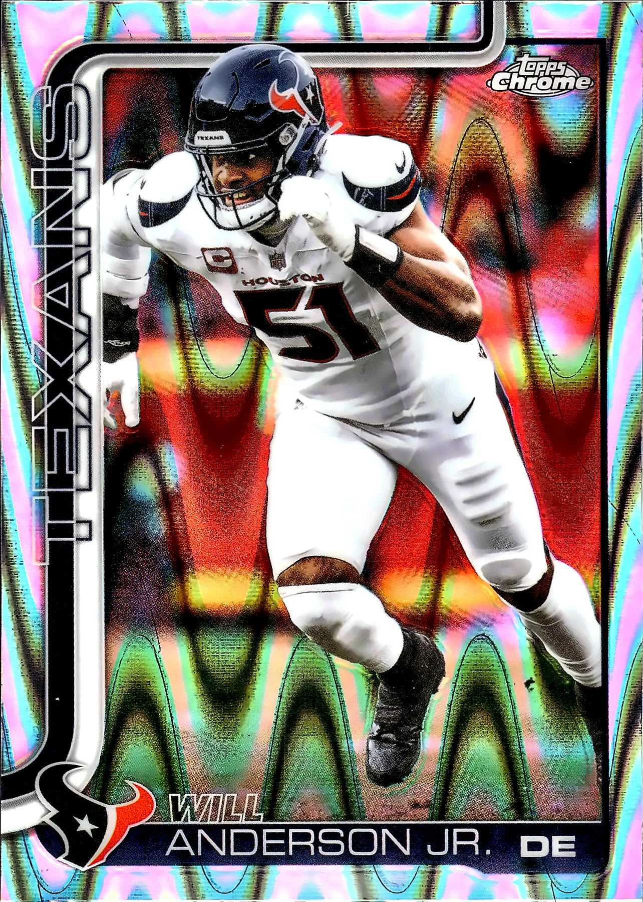 - The Will Anderson Jr. RayWave Refractor 2025 Topps Chrome #121 sells for an average of $5.55, ranging from $1.99 to $9.99 based on 15 recent eBay sold listings.